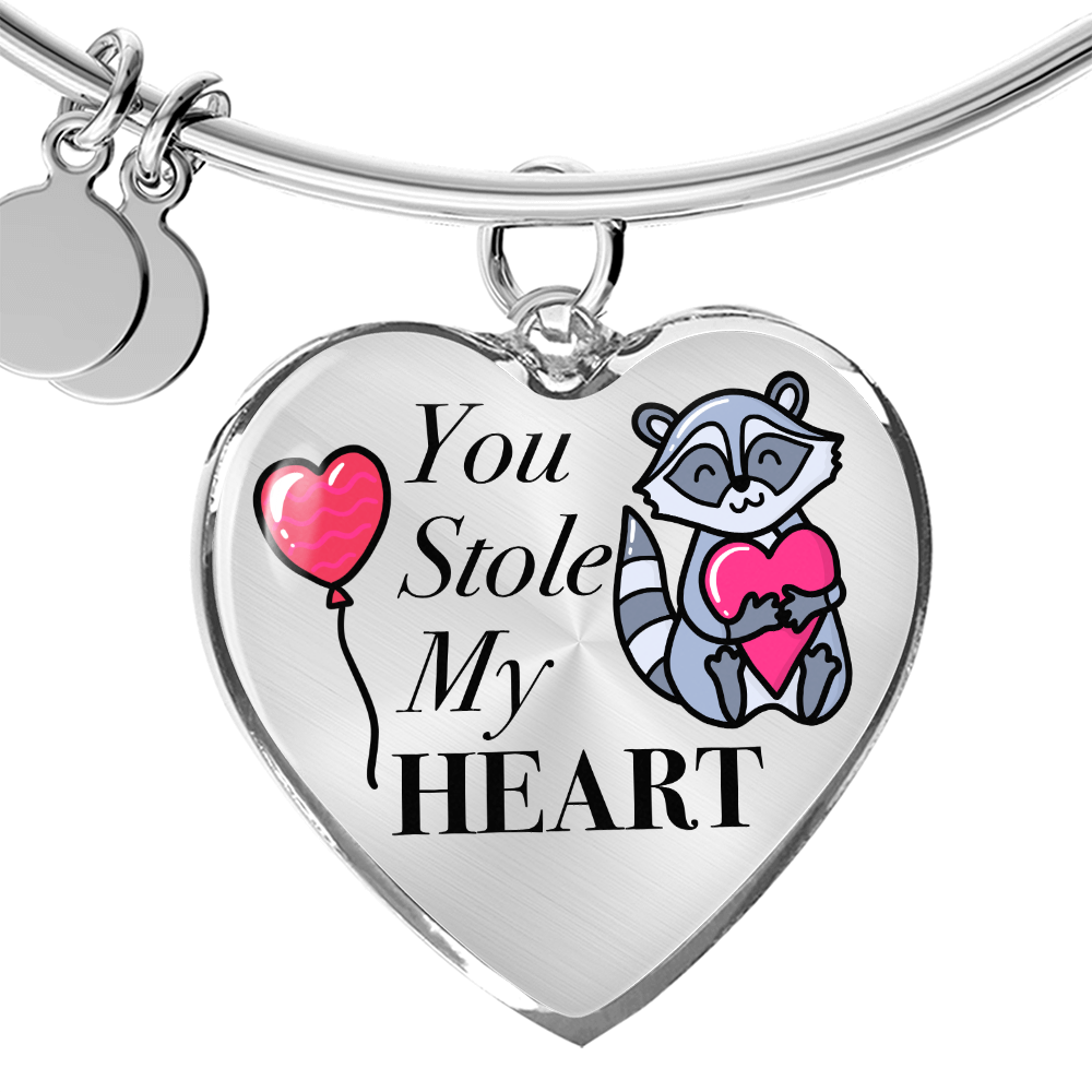 You Stole My Heart with Heart Balloon and Cute Raccoon - Heart Bangle Bracelet